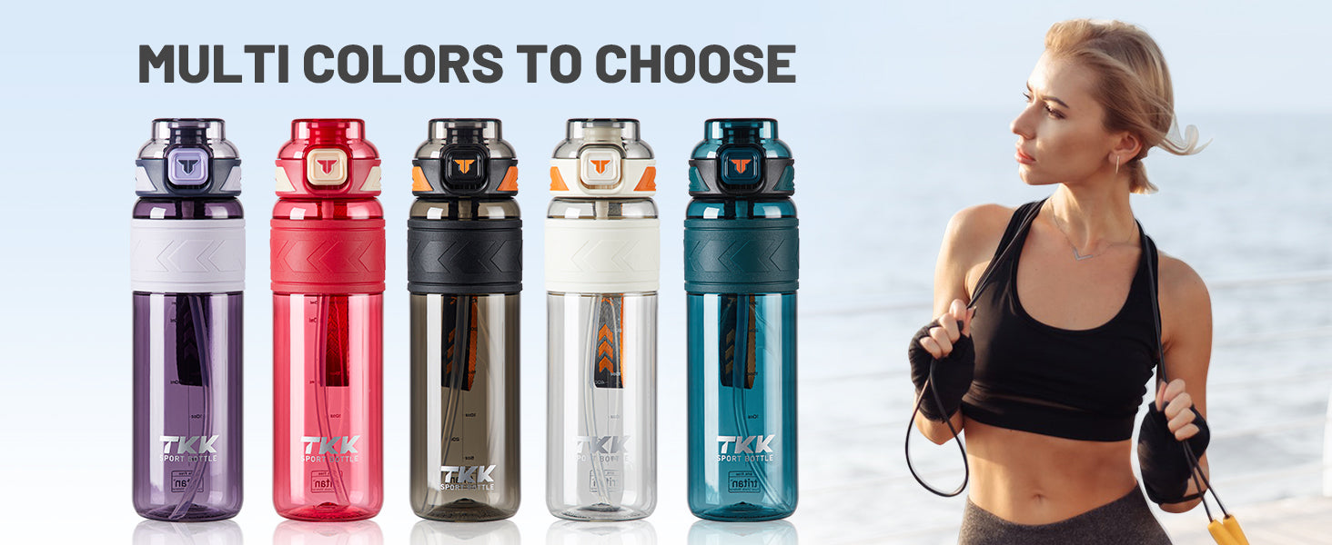 TKK Tritan Sports Water Bottle with Removable Straw and Leak-proof Lid, BPA Free