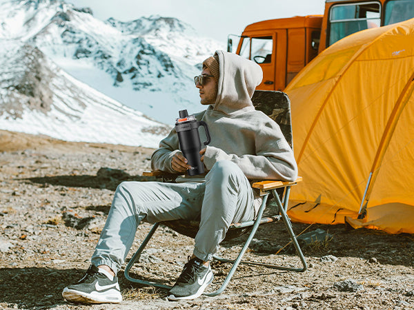 TKK Insulated Coffee Mug Ceramic Coating 21oz, 650ml with Strap for Hot and Iced Beverage